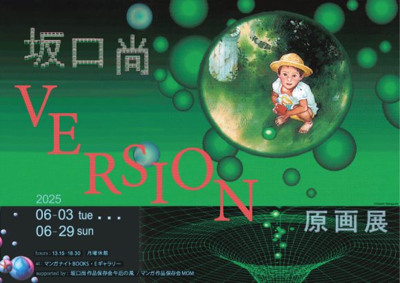 坂口尚の傑作SF『VERSION』原画展を6月2日〈火〉から6月29日〈日〉まで、豊島区トキワ荘通りの「マンガナイトBOOKS・EGallery」にて開催いたします 。その筆致を目と心に留め、映子さん、パンキーさん、フサガリさんとともに『VERSION』を辿り始める絶好の機会です。